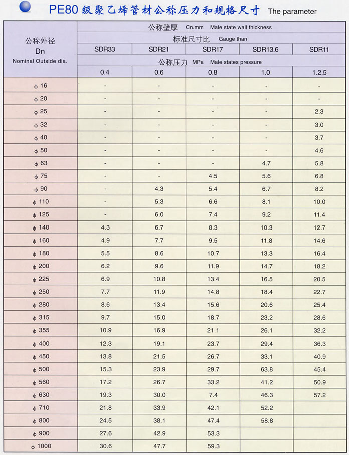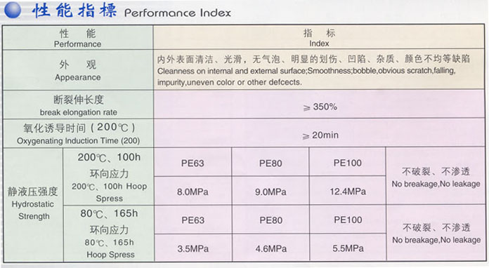 HDPE pipe materials use HDPE resin are made by high pressing. The products have many traits such as resistance ageing, high strength, good resistance to abrasion. As well as this trait, the pipe materials have some excellent comprehensive traits such as resistance to corrosion impact and low temperautre, self-lubrication, small flowing. The products can be used to transport such as supply water, pharmacy, chemical industry, metallurgy and sewage disposal, some corrosive mediums. such as mortar etc. and can be used to high construction water pipes. The specifications of HDPE pipe materials are the same as FRPP. The using tempatrue are -20℃ to +70℃.